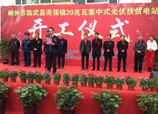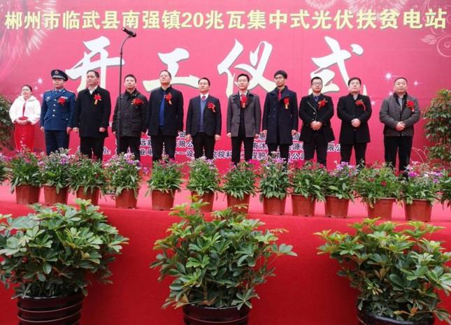 2018年2月7日上午9:58,湖南省郴州市临武县20MW地面集中式光伏扶贫电站开工典礼隆重举行。