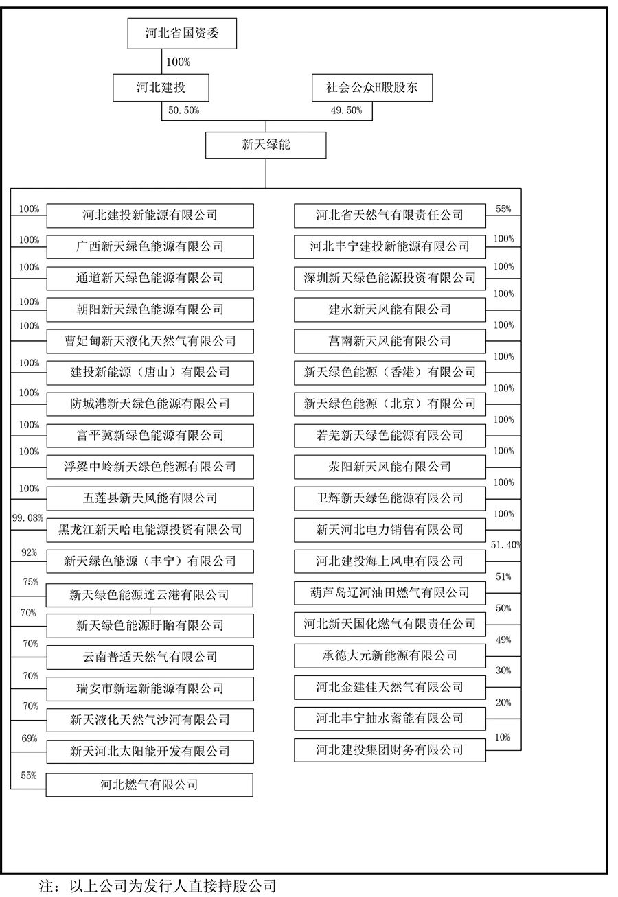 新天绿色能源股份有限公司成立于2010年2月9日,由股东河北建投与建投水务发起设立。其旗下拥有两大业务板块:风电业务和天然气业务。且在河北、山西、新疆、山东、云南、内蒙古等地区拥有风电项目。截至2018年12月31日止,其风电控股装机总量3858.15MW,权益装机总量3482.75MW。