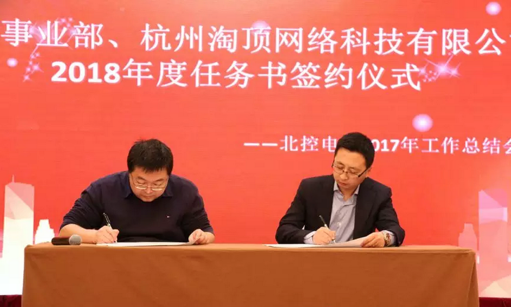 北控电力总经理雷涛先生分别与杭州淘顶网公司总裁侯生跃先生、六大区域事业部总经理签署了2018年度目标责任状,分别从2018年度业绩规模、利润实现、发电量、项目储备、内部管理等各方面进行考核。平台公司与各区域事业部全体成员任重道远、总部职能管理部门同时做好备战,共同迎接新一年的挑战。