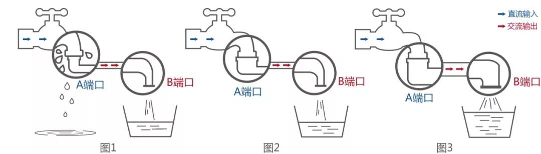 “吞”进的越多,相应的“吐”出来的也要越多。所以如果A端口输入的功率增大,但逆变器B端口口径没有相应加大,增加的功率一样送不出去,会被损失掉(图2)。只有B端口口径也增大,才能有足够的能力将增加的功率全部输送到电网上(图3)。“吐”的能力即逆变器的输出功率能力。