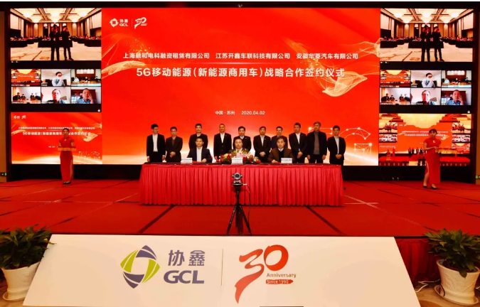 4月2日,在“协鑫集团5G移动能源战略合作签约仪式”活动现场,融和租赁与协鑫集团签署战略合作协议,融和电科与江苏开鑫车联、安徽华菱汽车签订三方合作框架协议。