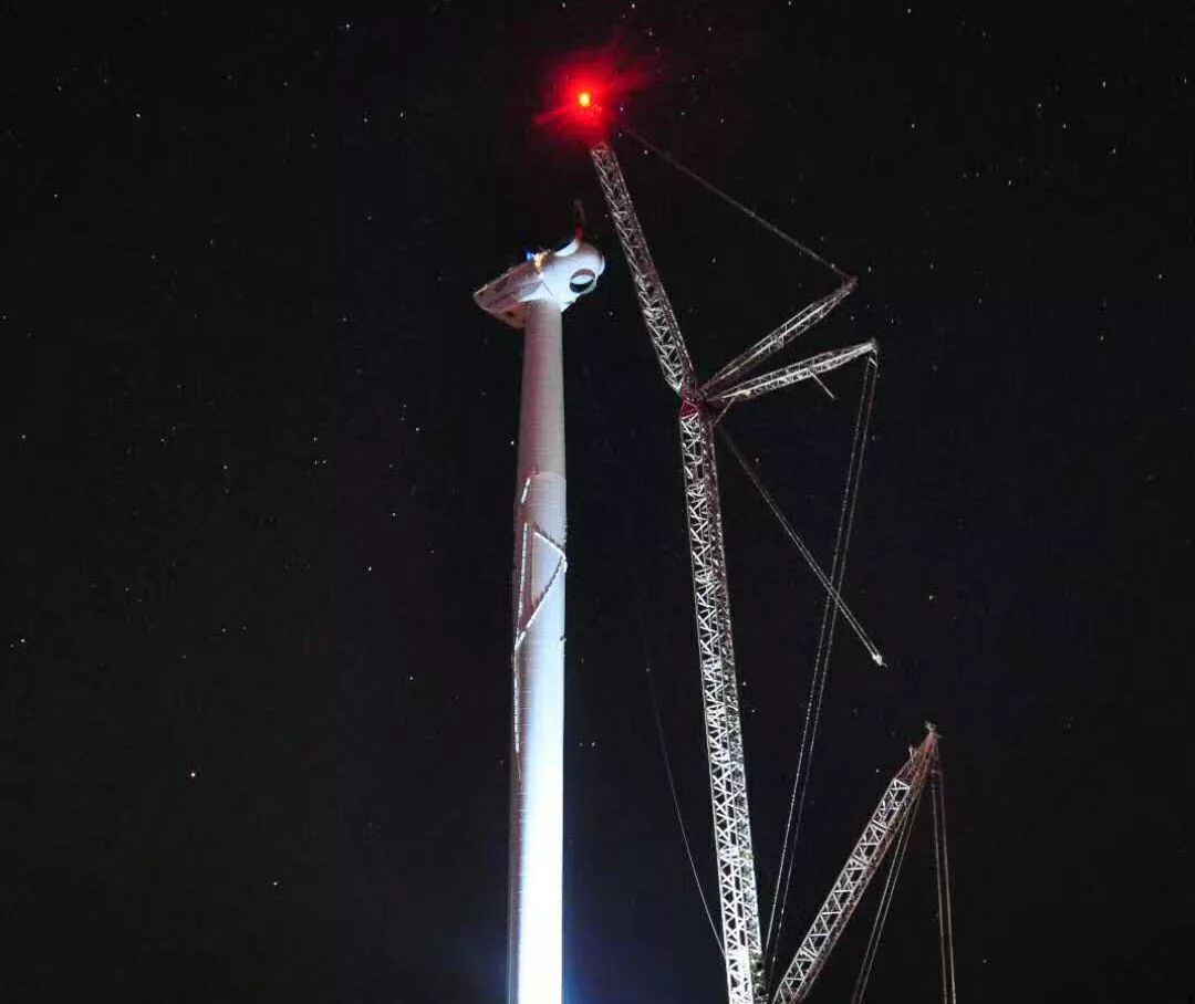 金风科技在对样机吊装的过程中,采用了单叶片吊装技术,使其成为国内采用该技术吊装的最大容量直驱永磁机组。这也是中国首次自主研发针对直驱机组的单叶片吊装技术,开创了我国风电整机商直驱机组单叶片吊装的先河。