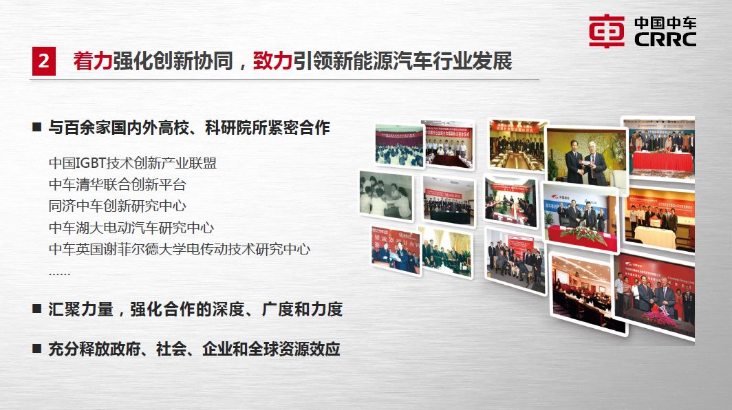 在新能源汽车领域,中国中车已与100余家国内外高校、科研院所建立了紧密合作关系。下一步,中国中车将充分借助“承担国家科技体制改革、实施国家重大专项研发任务”的有利契机,不断强化合作的深度、凝聚院士、教授等强大智慧,充分释放政府、社会、企业和全球的资源效应,协同创新模式坚持重大科技成果共创、共建、共享,引领全球新能源汽车行业技术发展。
