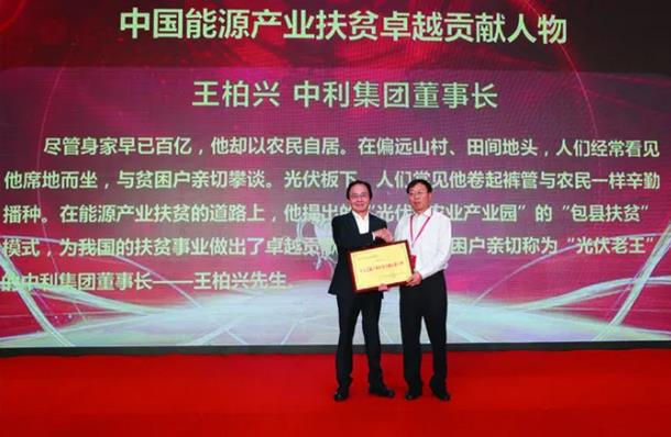 2017年9月26日,以“产业扶贫,共奔小康”为主题的首届中国能源产业扶贫高峰论坛在京召开。全国光伏扶贫工作组副组长、中利集团董事长王柏兴获得“中国能源产业扶贫卓越贡献人物”奖独份殊荣。中利集团创新推出的“贫困村光伏农场”精准脱贫模式也荣获了“中国能源产业扶贫模式创新”奖。