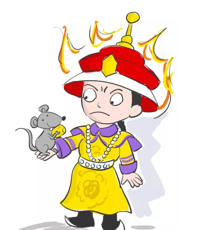 有一个皇帝,因在后宫被娘娘骂了,心情很不好,上朝的时候就把宰相骂了一顿。宰相满腹委屈,但不敢当面向皇帝发作。他回到家里,管家给他开了门,宰相就劈头盖脸地冲管家发了一通脾气。管家平白被骂,也觉得莫名其妙,又把一肚子气撒到家童身上。家童的怒气没地方发泄,就抓起扫帚把猫打了。猫白白挨打一顿,也很难过。正好这时,一只老鼠经过,猫发现后,狠扑上去,一口把老鼠给吃了……