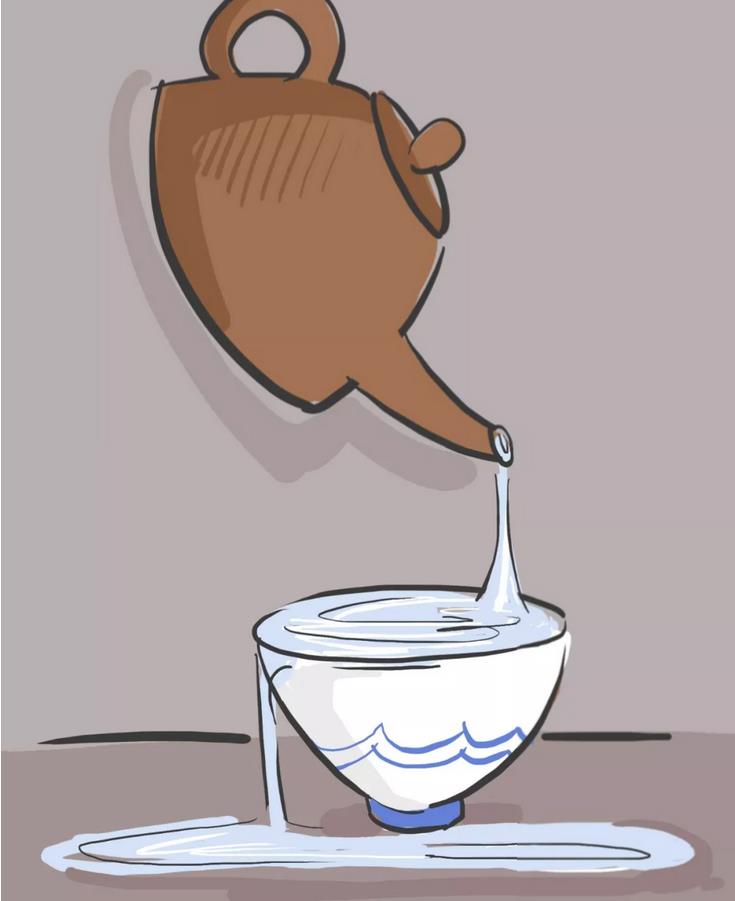 禅师让他举起茶杯,然后倒开水给他,水满则溢,烫手,秀才赶紧放下。