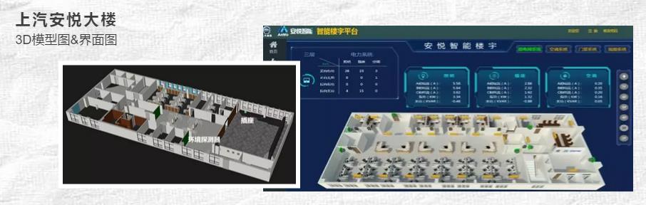 安悦智能楼宇以上汽安悦大楼A8为试点,内含五大系统,包括:能源监控、智能微电网、空调(含环境)、门禁&视频和照明节电控制等系统。通过对各系统进行数据采集和监控,旨在提高大楼的运行管理效率;另一方面对数据挖掘分析,为节能改造提供技术支持。