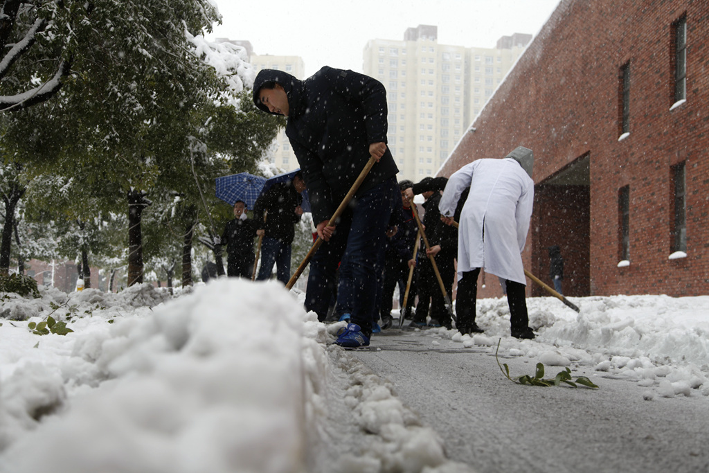 2、厂区主干道及人行道及时洒盐并清理积雪,早晚易结冰通道处设置安全警示标示,防止摔伤