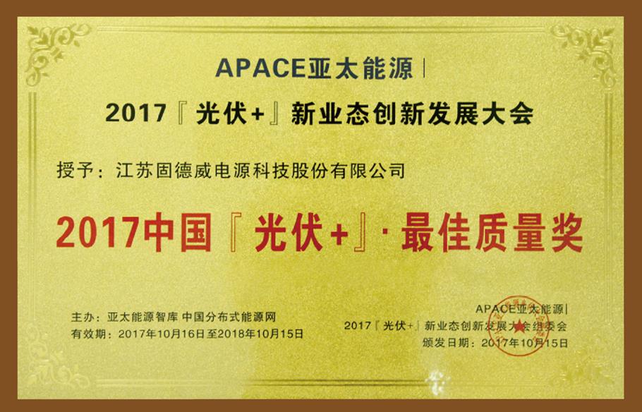 2017年10月15日 固德威荣膺“2017中国光伏+最佳质量奖”