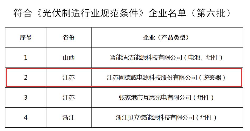 2017年10月26日 固德威列入工信部第六批企业列名