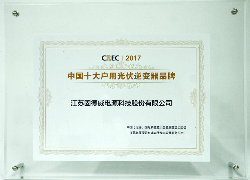 2017年11月03日 固德威荣获“中国十大户用光伏逆变器品牌”奖项