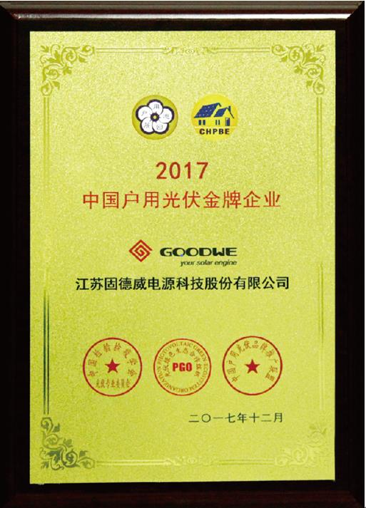 2017年12月15日 固德威荣膺2017中国户用光伏金牌企业