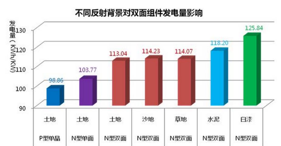 此前TÜV NORD向业内分享了一组宁夏户外项目的实证数据,该户外实证系统从近年4月开始并网运转,采用中来光电提供的N型双面双玻,N型单玻,P型单晶3种组件类型,设计了草地、沙地、土地、水泥、白漆等5种地面类型,以用来评估双面组件在不同背面反射介质情况下的户外实际发电性能,验证双面组件的发电性能。