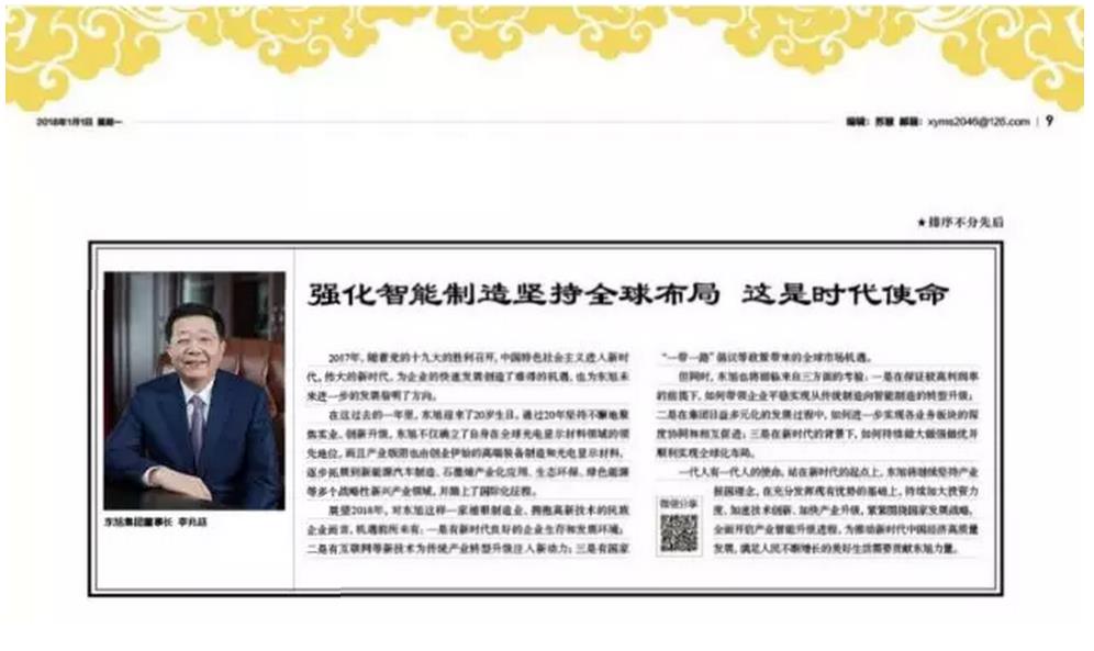 一代人有一代人的使命。站在新时代的起点上,东旭将继续坚持产业报国理念,在充分发挥现有优势的基础上,持续加大投资力度、加速技术创新、加快产业升级、紧紧围绕国家发展战略,全面开启产业智能升级进程,为推动新时代中国经济高质量发展,满足人民不断增长的美好生活需要贡献东旭力量。