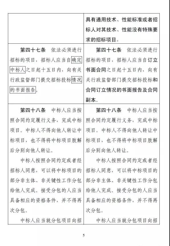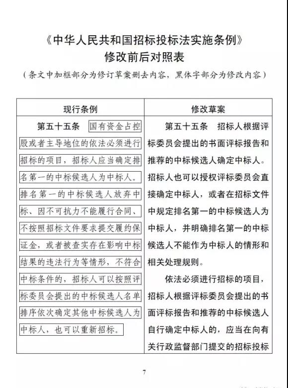 其中,最受大家关注的一点是:招标人可以直接确定中标人。该条修改前后对照如下:
