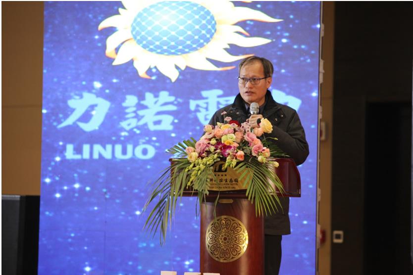 力诺电力集团董事长周广彦先生致欢迎辞,他对莅临本次会议的各位领导和来宾表示热烈的欢迎,对社会各界的关心支持表示衷心的感谢。他表示,党和政府对我国的光伏行业极为重视,十九大会议上习近平总书记关于新能源发展和精准扶贫的讲话,为我国今后的光伏行业指明了发展的方向。光伏行业协会在光伏企业发展的过程中发挥了巨大的作用,为各企业的交流提供了平台,为行业的自律树立了规范,为党和政府制定相关政策提供了依据。力诺电力成立15年以来,合作伙伴和客户以及媒体朋友基于力诺电力出众的产品品质、优良的建设施工队伍、领先的技术研发、完善的售后服务,与力诺电力相濡以沫,伴随着力诺电力不断成长。周广彦对大家的不离不弃表示感谢。