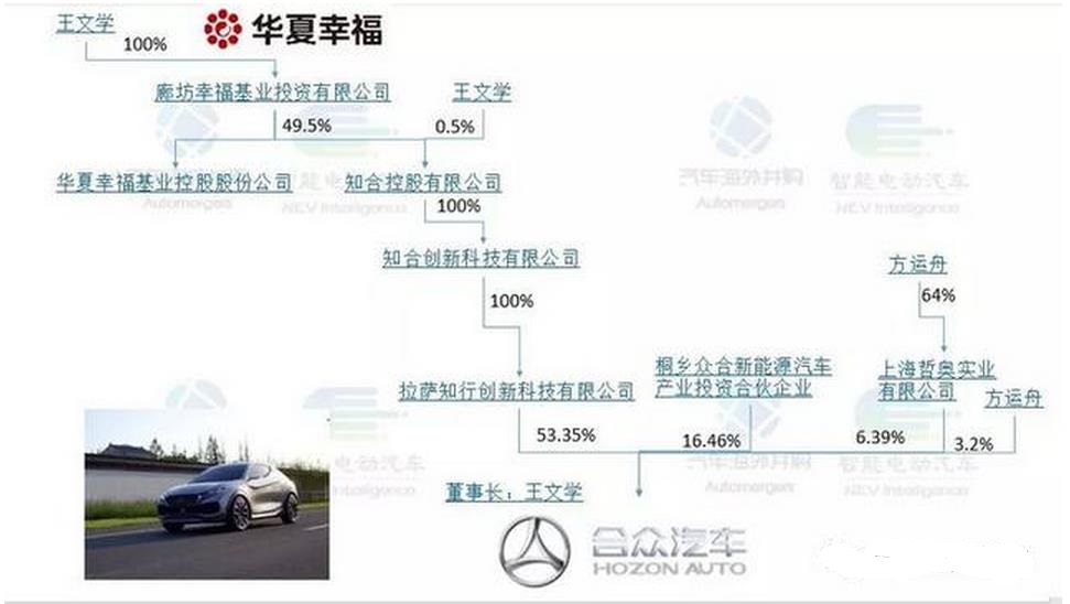 2017年10月31日,获得发改委新能源投资的核准的第13个造车新势力浙江合众新能源汽车有限公司,股权结构悄然发生了变化,实际控制人由原来清华大学节能与新能源汽车中心副主任方运舟正式变更为华夏幸福董事长王文学。