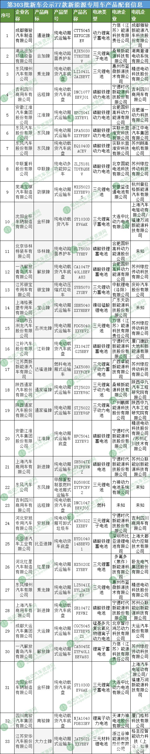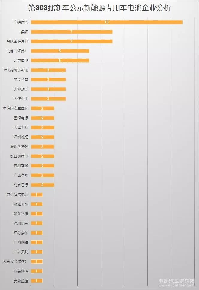 第303批新车公示新能源专用车配套分析 宁德时代居首,桑顿/国轩高科等靠前