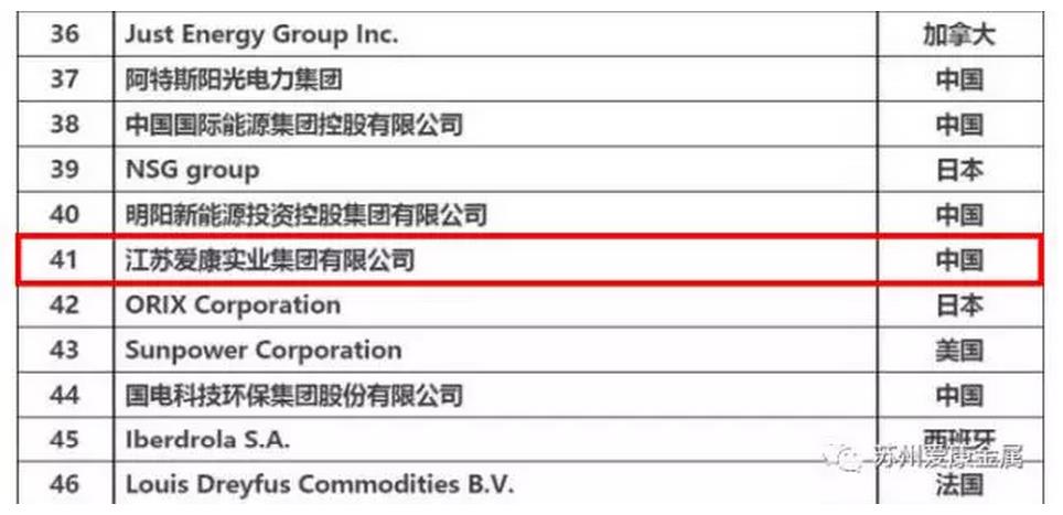 江苏爱康集团荣膺全球新能源企业500强榜单第41位!并喜获科技创新企业奖!