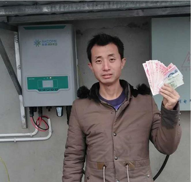从那一天开始,张先生空闲时间的必修课之一就是盯着逆变器看看自家的电站发了多少度电,再爬到屋顶上给自家电站清扫清扫。邻居们都说“爬这么高打扫累不累啊?”,他回答“这能挣钱呢,打扫打扫干净了发电量更高!”。张先生还时不时的跑去邻村家比一比,到底谁家电站发电多。每每看到自家电站比别的电站多发了一度两度电,他心里都开心得不行,热衷于这种爱康五好家电站带给他的独特乐趣。