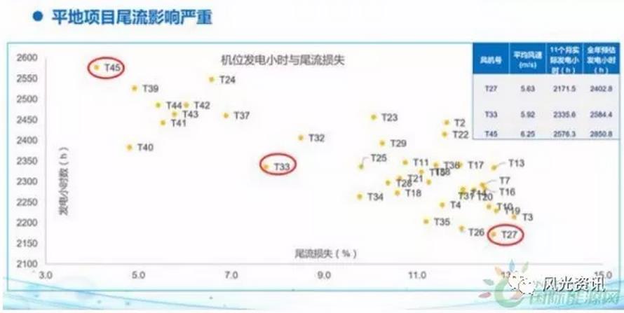 作为资深的风资源及微观选址专家,许锋飞表示,“为啥花同样的钱买来的120米高塔筒EN121-2.2MW风机,有的机位前11个月满发2576小时,有的机位仅2172小时?”他分享了一个典型的平原项目各机位的实际发电量和仿真尾流损失的关系图,可以发现平地风电场项目的尾流影响巨大,“不把风资源差异说清楚的电量对比都是耍流氓,国内各种风资源差异不清晰、机型差异不明确的发电量竞争排名需要理性降温。”