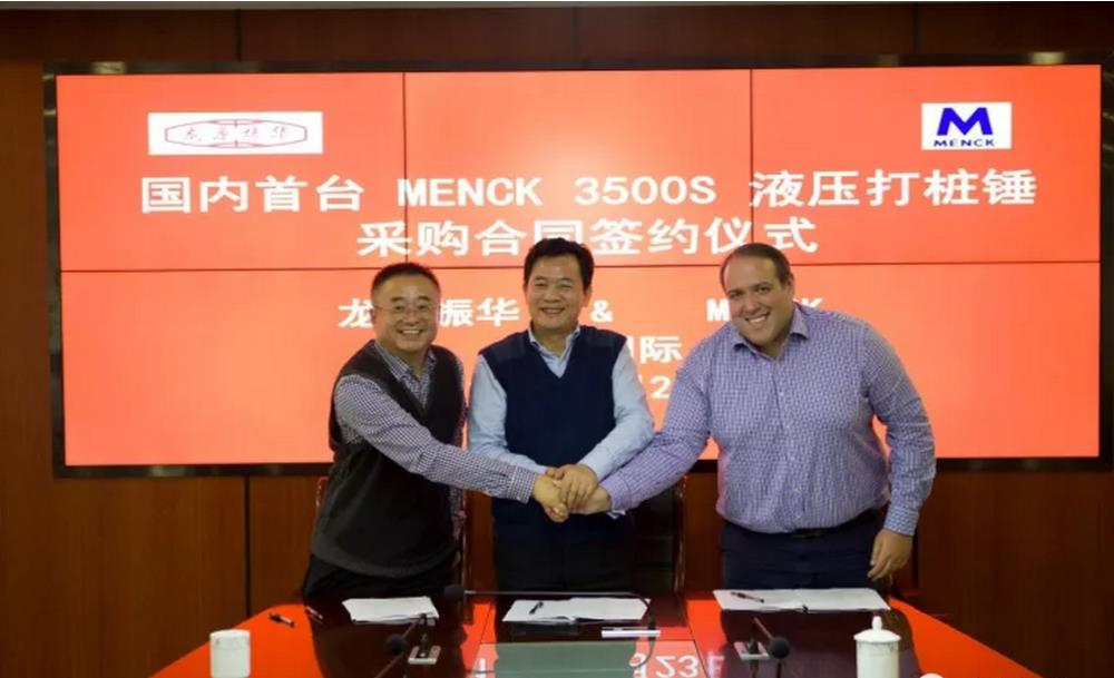 2017年11月23日,国内首台MENCK 3500S 液压打桩锤采购合同签约仪式在龙源振华公司举行,这是龙源振华公司首次与MENCK GmbH公司达成合作协议,结成战略同盟伙伴。