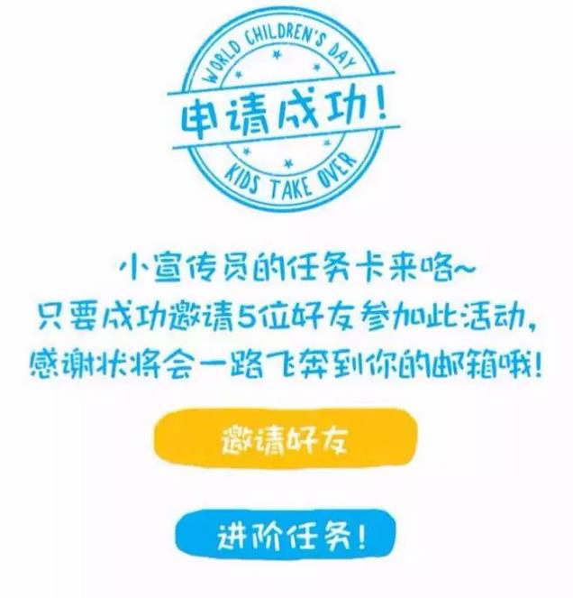 2.分享约定:邀请好友参与互动活动,成为“世界儿童日”小宣传员,获得电子感谢状。