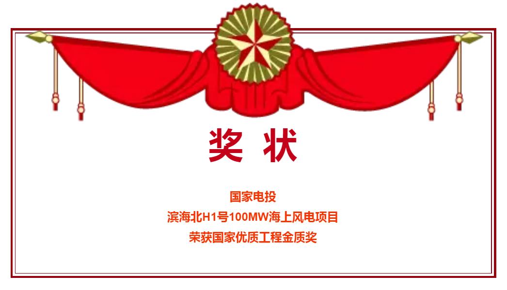 滨海北H1号海上风电项目荣获风电行业首个国家优质工程金奖!