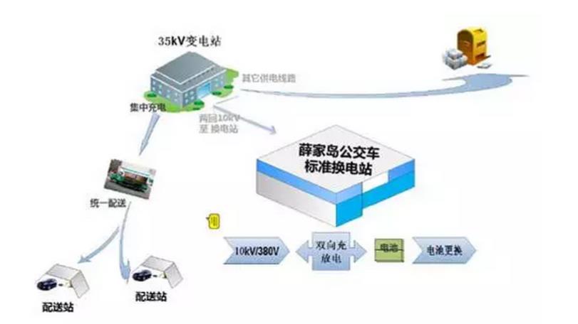 ˙2011年6月,青岛薛家岛充换储放一体化电站正式运行,该方案日换电可达560次,可同时服务6辆公交车;