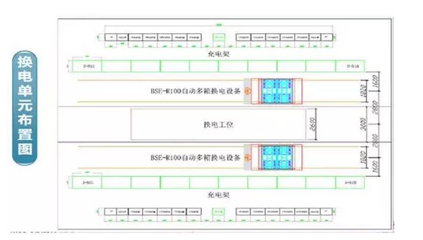 在换电系统方面,薛家岛换电站主要针对公交车换电作业,采用机械手从车辆侧面抓取电池进行换电的方式,其换电平面布置图如下所示。