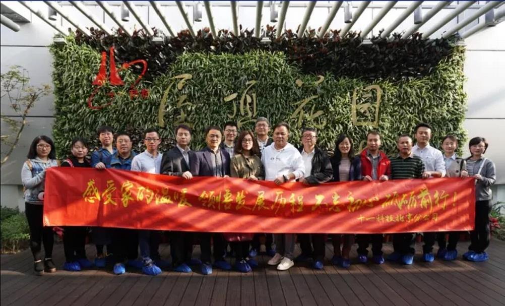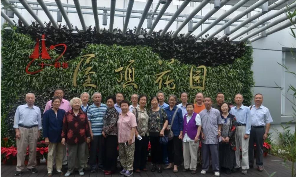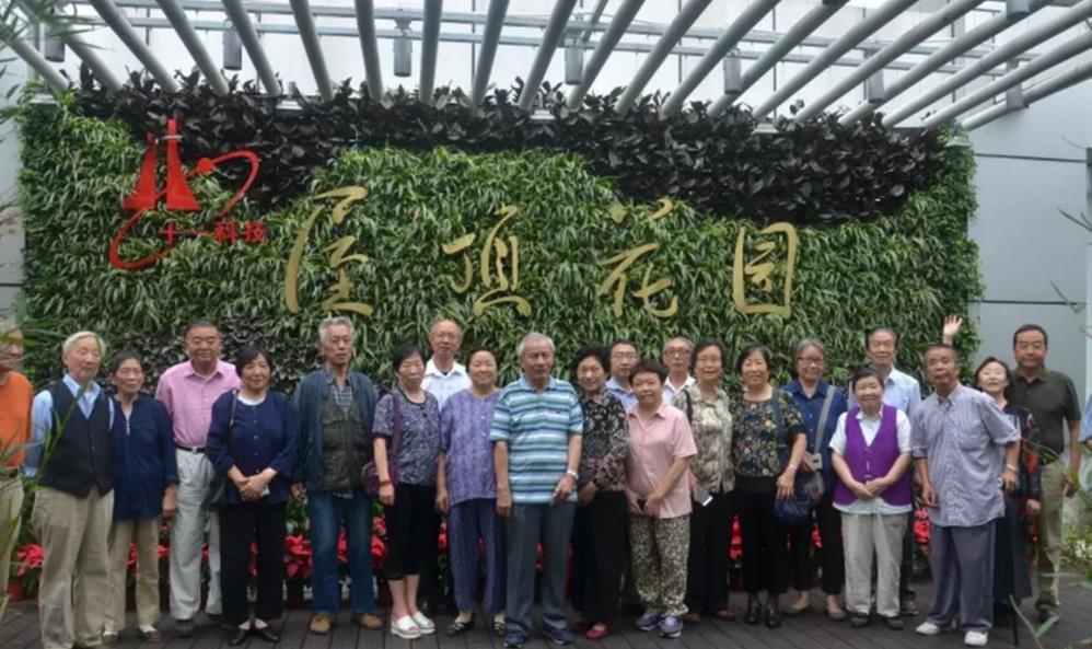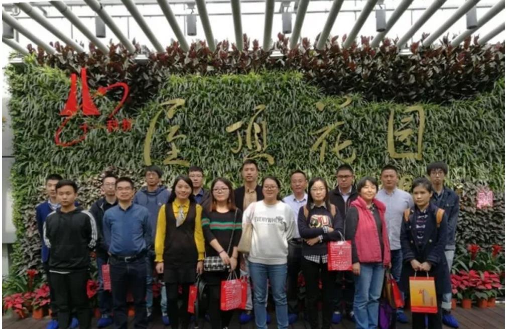 2017年9月22日院领导与十一科技总部参观屋顶花园员工亲切合影