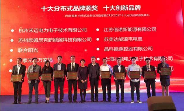 在刚刚结束的CREC2017十大光伏品牌颁奖典礼上,“宅电宝”获得“中国分布式十大创新品牌”称号。目前品牌推广迅速,经销商网络已遍及江苏、河北、山东、浙江、安徽、山西、河南等多个重点省份。