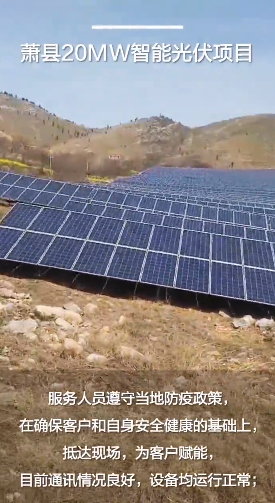安徽萧县20MW山地项目,采用华为智能光伏解决方案。华为服务人员遵守当地防疫政策,于3月18日抵达现场对客户赋能,并开展技术改造后的首次例行巡检,目前通讯情况良好,设备运行正常。