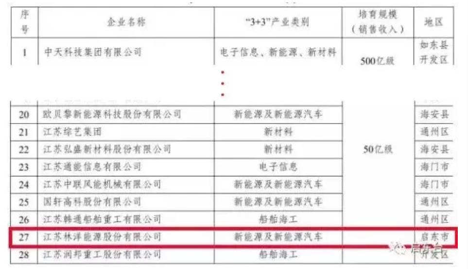江苏林洋能源股份有限公司作为符合“3+3+N”产业发展导向、“十三五”期间规模目标50亿级以上的重点工业企业成功上榜。