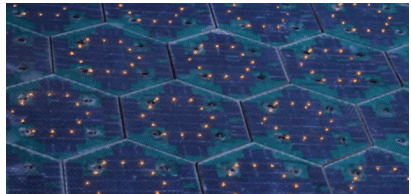 其实,这些六边形的“电子线路”,叫做 Solar Brick。这里面的每个六角形的钢化玻璃从上往下依次分成这些层: