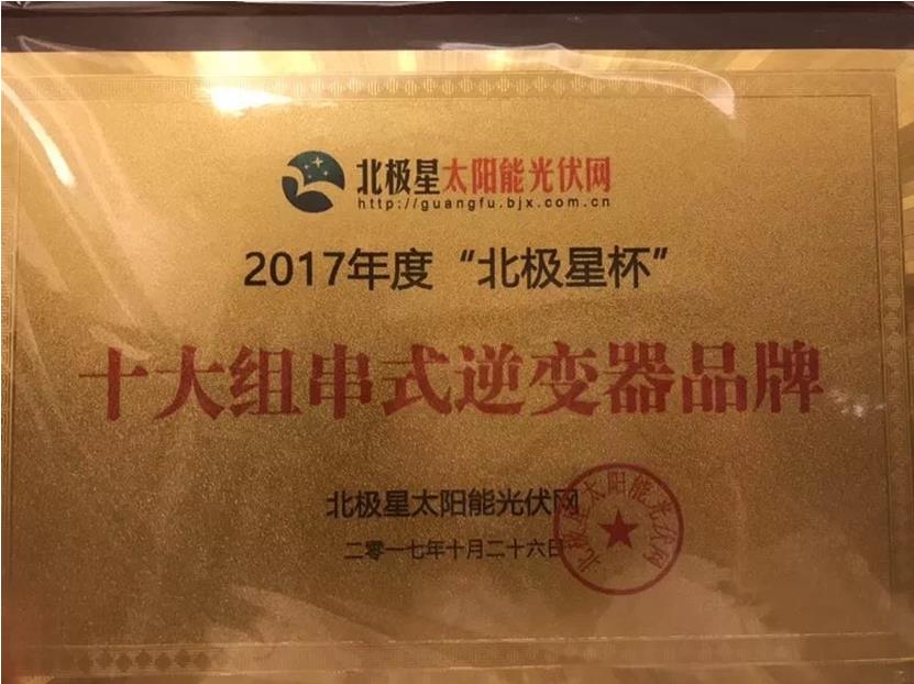 首航新能源荣膺2017“北极星杯”十大组串式逆变器品牌