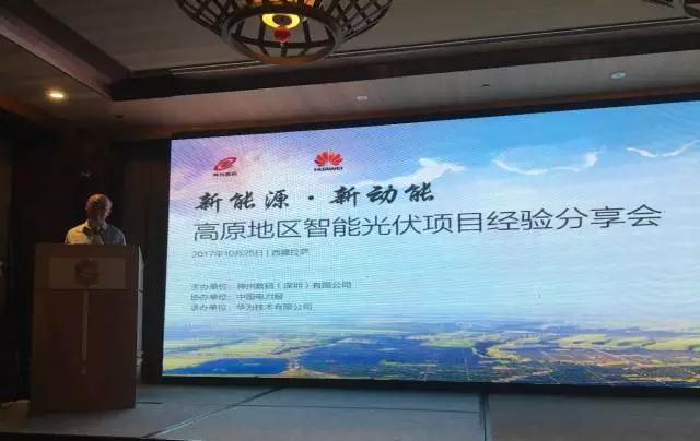 2017年10月25日,在“日光之城”拉萨,由神州数码(深圳)有限公司主办,中国电力报协办,华为技术有限公司承办的以“新能源·新动能”为主题的高原地区智能光伏项目经验分享会成功举办。来自政府、电网公司、行业协会、EPC等领导专家会聚一堂,就“西藏光伏发展形势及政策”、“光伏扶贫”、“离网光伏发展趋势及解决方案”、“高海拔地区光伏电站建设与运维”等热点话题进行了交流与实践经验分享。