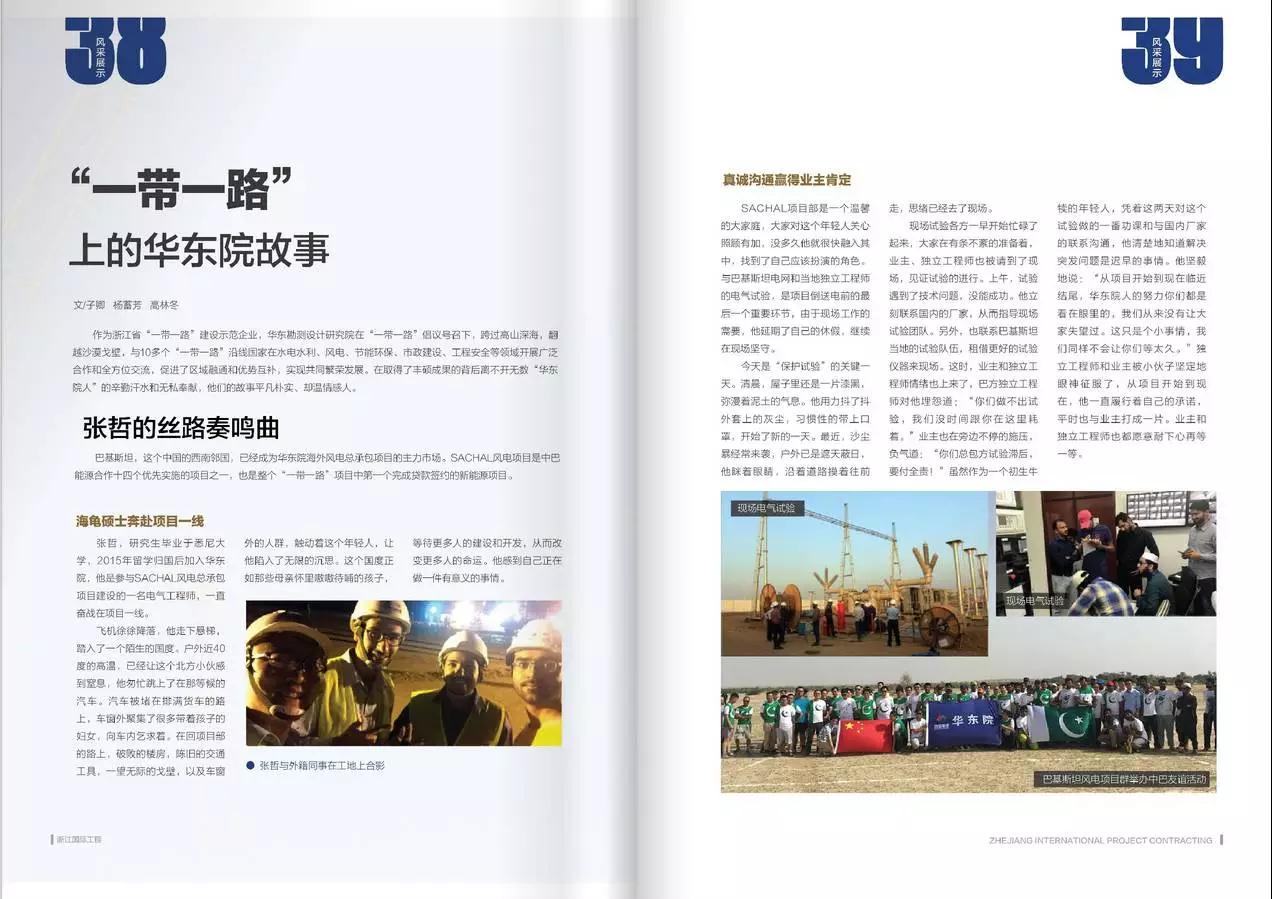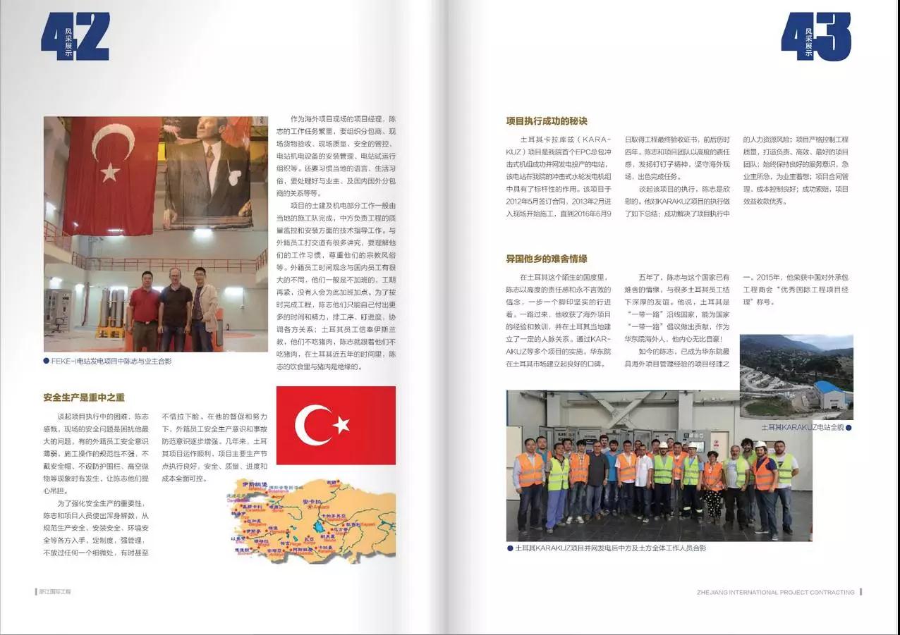 近期,《浙江国际工程》2017年第02刊(季刊)总第09期刊登了第二届浙江省国际工程示范企业、经营人才获奖名单以及我院“一带一路”专题报道——“一带一路”上的华东院故事,分别为:张哲的丝路奏鸣曲、陈志与土耳其的情缘、昂带的wifi三篇文章。