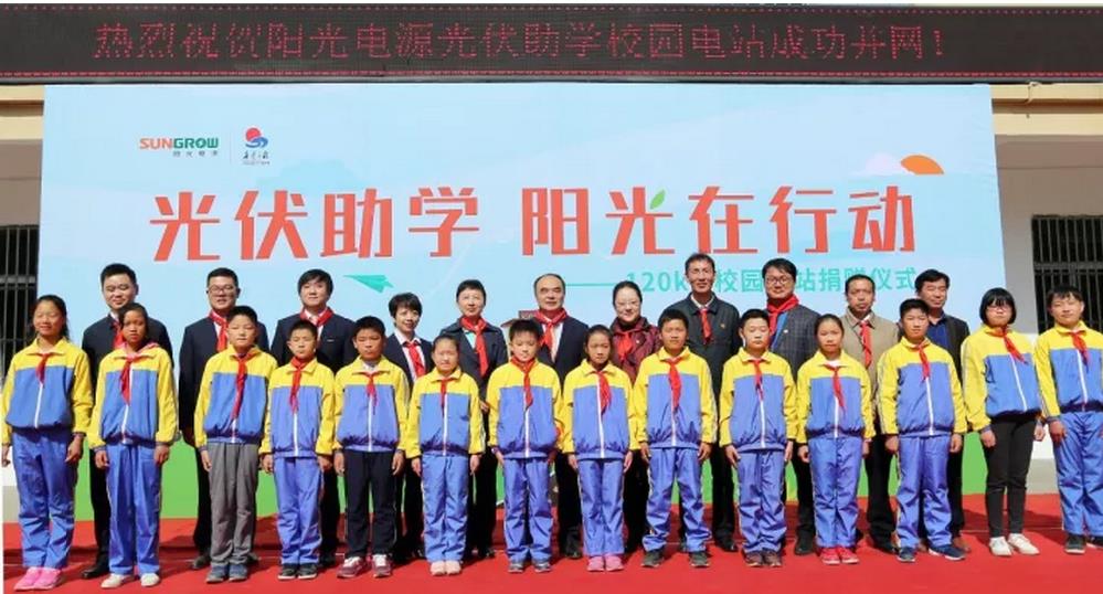 光伏助学,阳光在行动。10月24日,阳光电源120kW校园爱心电站捐赠项目启动仪式在安徽省金寨县洪学智红军小学举行。共青团安徽省委书记李红,省青少年发展基金会秘书长李永军,金寨县委常委、组织部长赵锦文,共青团六安市委书记张柱,共青团金寨县委书记朱成亮,阳光电源董事长曹仁贤,阳光家庭光伏事业部总经理李琛等领导及学校师生代表出席活动。