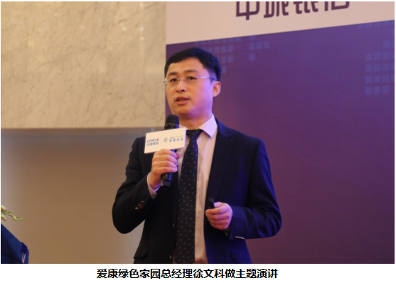 致辞结束之后,爱康绿色家园总经理徐文科发表了“加速产融结合,共建绿色家园”的主题分享,就市场容量、国家政策、户用市场发展现状、爱康集团优势、双方合作内容等五方面进行了介绍、徐总对户用市场的深刻理解受到了现场参会人员的极大关注。