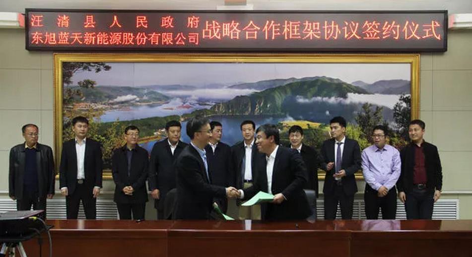 10月19日,汪清县政府与东旭蓝天签订战略合作框架协议。双方携手,充分发挥各自的优势,将在新能源项目、脱贫攻坚示范区、城市环保等项目领域展开全面、深入的战略合作。