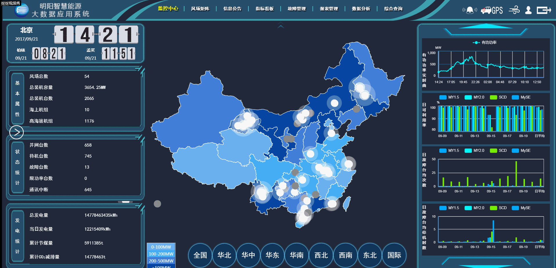 处理未来气象环境的变化,我们还需要感知机组自身状态的变化。集中监控系统自2015年投运以来,已经实现了全国范围内的风电场接入,并且能够实现分区域、分机型等各种维度的数据管理。