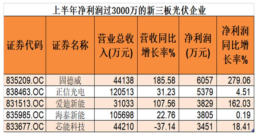 据统计,22家新三板光伏企业上半年盈利实现同比增长,占已披露半年报光伏企业的58%,11家企业净利润增幅超过1倍。