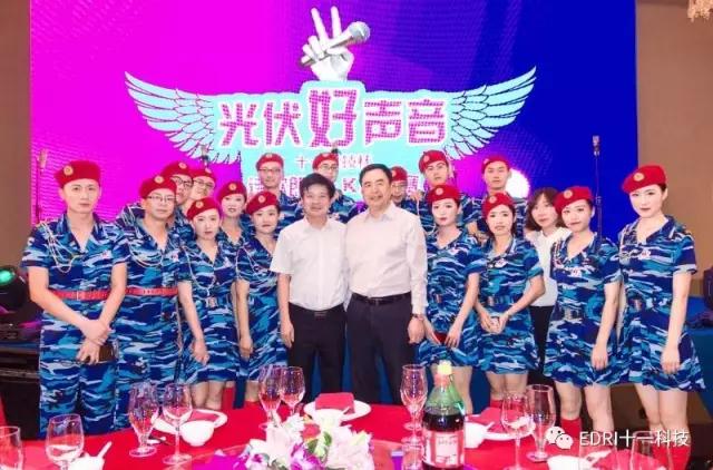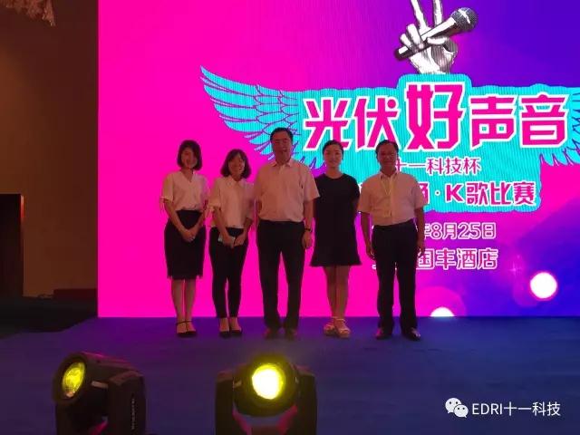 第二环节为K歌比赛。选手们将精心准备的歌曲一首首展示,优美的歌声响彻宴会厅,他们朝气蓬勃、意气风发,逐一上场参加比赛:江苏固德威电源科技有限公司张默带来歌曲《听海》;十一科技合肥分公司汪丽君带来歌曲《梦里水乡》;海太半导体(无锡)有限公司施伟峰带来歌曲《会痛的石头》;无锡十一新能源投资有限公司朱晨源带来歌曲《女人的选择》;十一科技合肥分公司陆欣悦带来歌曲《樱花草》;无锡海太半导体有限公司张智超带来歌曲《慢慢》;固德威电源科技有限公司于双立带来歌曲《阿飞的小蝴蝶》;招商新能源内蒙区域公司胡蝶/田波组合带来歌曲《扬帆在招商》;中电科电子装备集团黄晶带来歌曲《爱我中华》;苏州太极半导体有限公司叶朝东带来歌曲《再见》。随后进行拉票打分环节,选手们积极拉票,现场活跃的气氛逐步进入高潮。经过激烈的选拔,于双立、黄晶、张默分获K歌组的一、二、三等奖,余才志同志为优胜奖获奖者颁奖,赵振元同志为冠、亚、季军获奖者颁奖并与参赛选手亲切合影,赵振元同志说:在我们的心目中有许多的冠军,在此向大家的参与表示衷心地感谢,感谢太极、中电科和十一科技的参与,我们永远是光伏的战士。