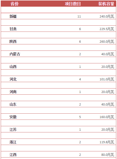 江山控股截至2017年6月30日持有已建成及并网之太阳能发电站一览表:
