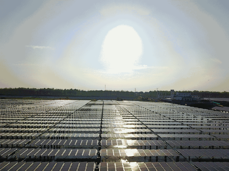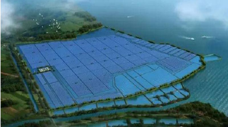 据项目地总负责人透露,此次项目最大的创新和优化亮点,在于规划出部分用地采用跟踪系统和水上打桩,水上完成组件的安装,并得到了很好的创新效益。