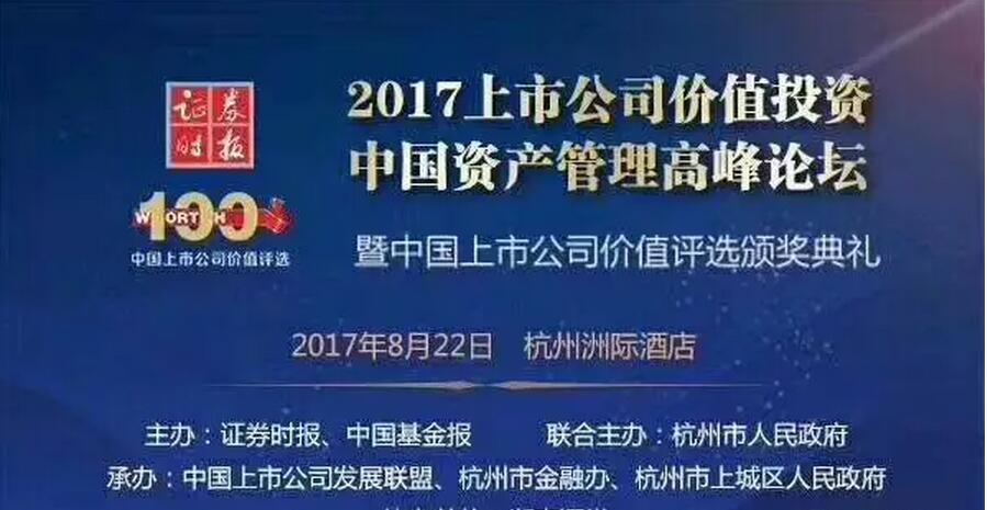 2017年8月22日,由证券时报、中国基金报、中国上市公司发展联盟等联合举办的“改革厉行价值起舞——2017上市公司价值投资·中国资产管理高峰论坛暨中国上市公司价值评选颁奖典礼”在杭州顺利举行。会上揭晓了“第十一届中国上市公司价值评选”各奖项榜单。