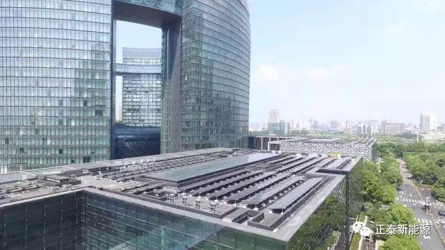 在杭州市民中心裙楼屋顶建设光伏发电项目,为实现“节能减排,低碳杭州”的愿景立标杆树榜样。装机容量1200千瓦, 25年的累计发电量可达到2382万度电。