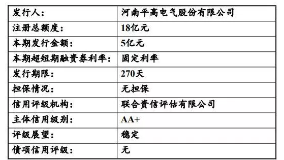 3月23日,河南平高电气股份有限公司发布2020年度第一期超短期融资券募集说明书,注册总额度为18亿元,本次拟发行5亿元超短融,发行期限270天。
