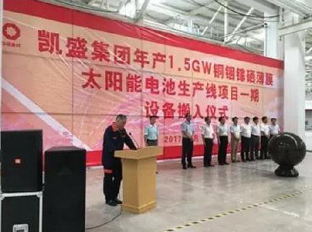 凯盛光伏年产1.5GW铜箔镓硒太阳能薄膜生产线项目,作为安徽省、蚌埠市的重点项目工程之一,以引进、消化、吸收、再创新的模式,率先在国内推进新一代薄膜太阳电池大规模国产化。随着一期设备搬入,项目将建成具有德国工业上4.0先进设备的安装,在国庆节前完成整线调试,在今年年底前产出合格的产品,并开始量产。项目的实施,将全线打通中国薄膜歹阳能电池产业链,全面打造中国薄膜太阳能产业升级版,打破目前太阳能电池的生产严重依赖多晶硅的局面,持续推进蚌埠市千亿元硅基新材料产业向世界高端迈进。